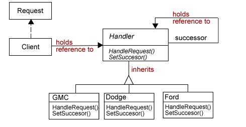 - 어떤 요구가 발생했을 때, 그 요구를 처리할 Object를 바로 결정할 수 없을 때, 다수의 Object를 Chain으로 연결해 차례로 방문하면서 목적에 맞는 Object를 결정함(내가 못하면 남한테 전가시킴)