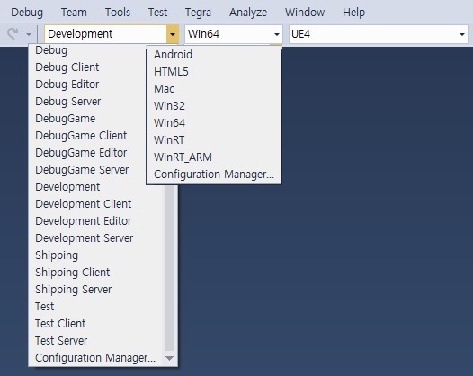 정리하자면 개발하는 동안에는 "DevelopmentEditor + Win64 + UE4" 와 "Development + Win64 + UE4" 구성만 빌드하면 됩니다.