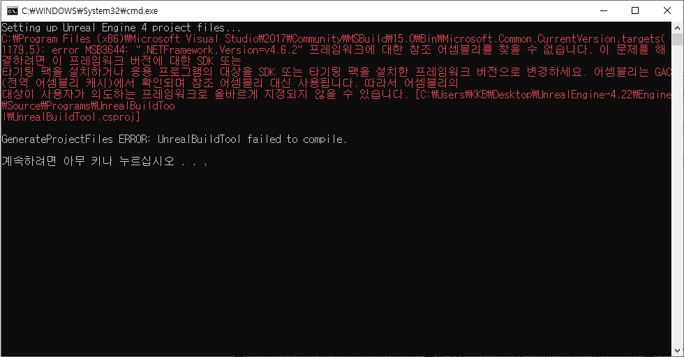 이 파일을 실행하게 되면 언리얼 엔진 소스 폴더를 열심히 돌면서 자동으로 프로젝트 파일을 생성한다.