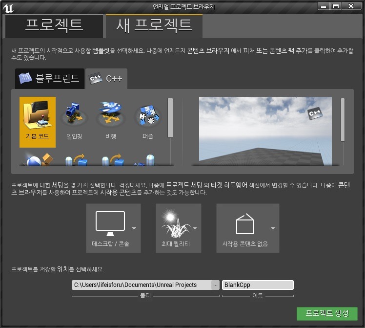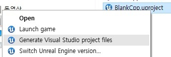 또는 BlankCpp.uproject 파일의 컨텍스트 메뉴에서 생성할 수 있다.