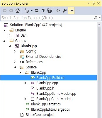 역시 여기에도 BlankCpp.Build.cs 라는 녀석이 생성되는데. 즉 BlankCpp 모듈이다.