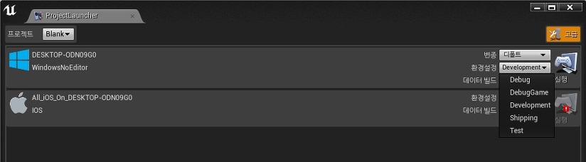 그리고 Debug, DebugGame, Development, Test, Shipping 은 각각의 구성에 맞게 "UE4Game-$(Platform)-$(Configuration).exe" 라는 바이너리를 생성합니다. 이것이 하나의 에디터에서 다양한 플랫폼의 실행 파일을 런칭할 수 있는 비법( ? )입니다.