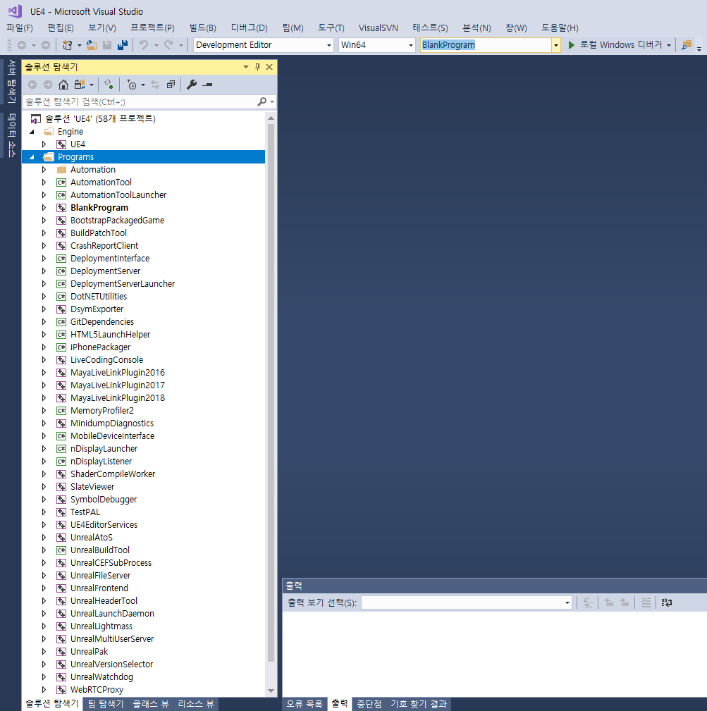 이제 엔진 루트에 UE4.sln 이라는 솔루션 파일이 생성되어 있는 것을 확인하실 수 있다.