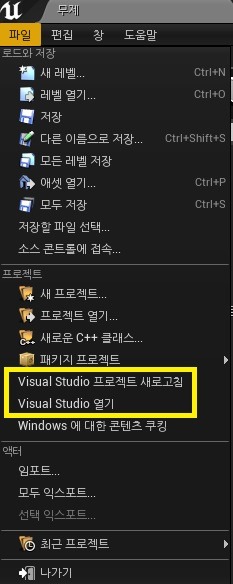 uproject 를 열어서 에디터에서 다음과 같은 메뉴를 사용하면 된다.