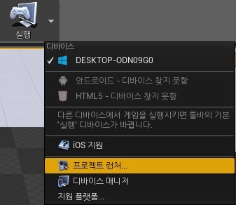 에디터에서 안드로이드같은 디바이스로 프로그램을 런칭시킬 수 없습니다