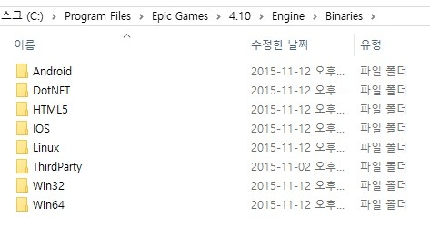 "DevelopmentEditor + Win64 + UE4", "Development + Win64 + UE4", "Development + Android + UE4" 를 빌드했다면, "Engine/Binaries" 디렉토리를 통째로 소스 제어에 등록된다.