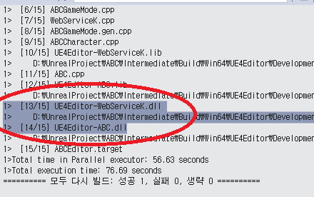 먼저 빌드 세팅을 Development Editor로 변경한 후에 Ctrl+Alt+F7키를 눌러 "솔루션 다시 빌드 옵션"으로 빌드하면