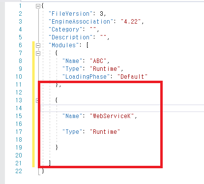 에디터를 닫고 uproject 파일을 아래와 같이 변경해줍시다.