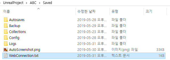 그래서 플레이를 눌러 실행한 후 탐색기에서 Saved 폴더를 확인하면