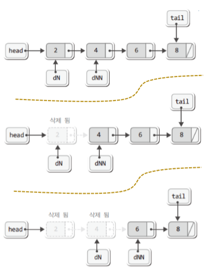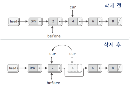 ※ 삭제를 하고 나서 머리 및 꼬리는 다음 노드와 연결을 해주어야 한다.