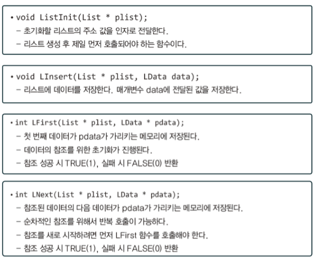 ※ 이렇듯 결정된 약속을 근거로 함수가 정의되어야 하며, 연결 리스트 또한 이 를 근거로 구현되어야 한다.