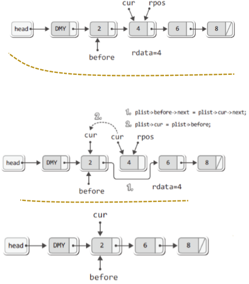pList->before = pList->cur; //cur이 가리키던 것을 befor가 가리킴
