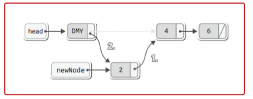 ▶ 더미 노드 연결 리스트 구현: 삽입