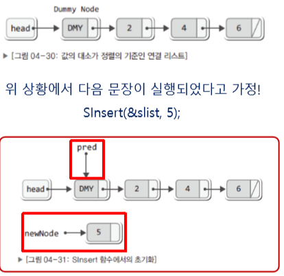 pList->comp(data, pred->next->data) != 0) // 새 노드의 값(data)과 더미 노드 다 음 데이터(pred->next->data)를 비교해서 data가 더 크다