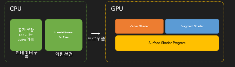 • 셰이더 프로그래밍도 두 단계로 나눈다. ( 서피스 셰이더 / 일반 )