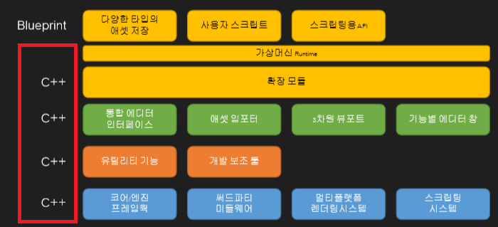 • 언리얼은 높은 수준의 모델을 제공한다. = 엔진의 유연성이 떨어진다.