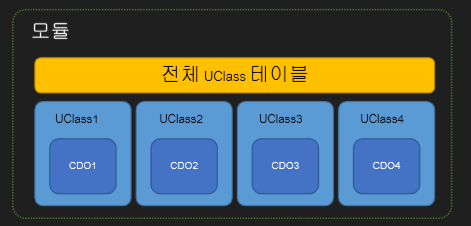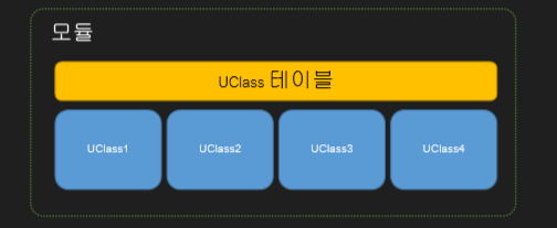 초기화 단계에서 모듈 별로 자신이 속한 언리얼 오브젝트의 UClass DB를 구축한다.