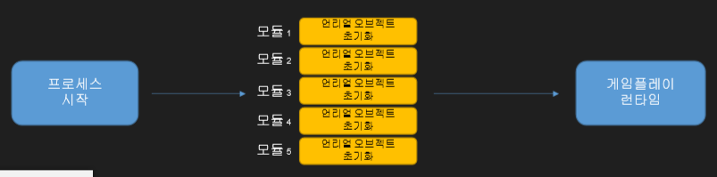 언리얼 엔진의 실행의 처음에는 항상 모듈 단위로, 언리얼 오브젝트 초기화 과정이 들어간다.