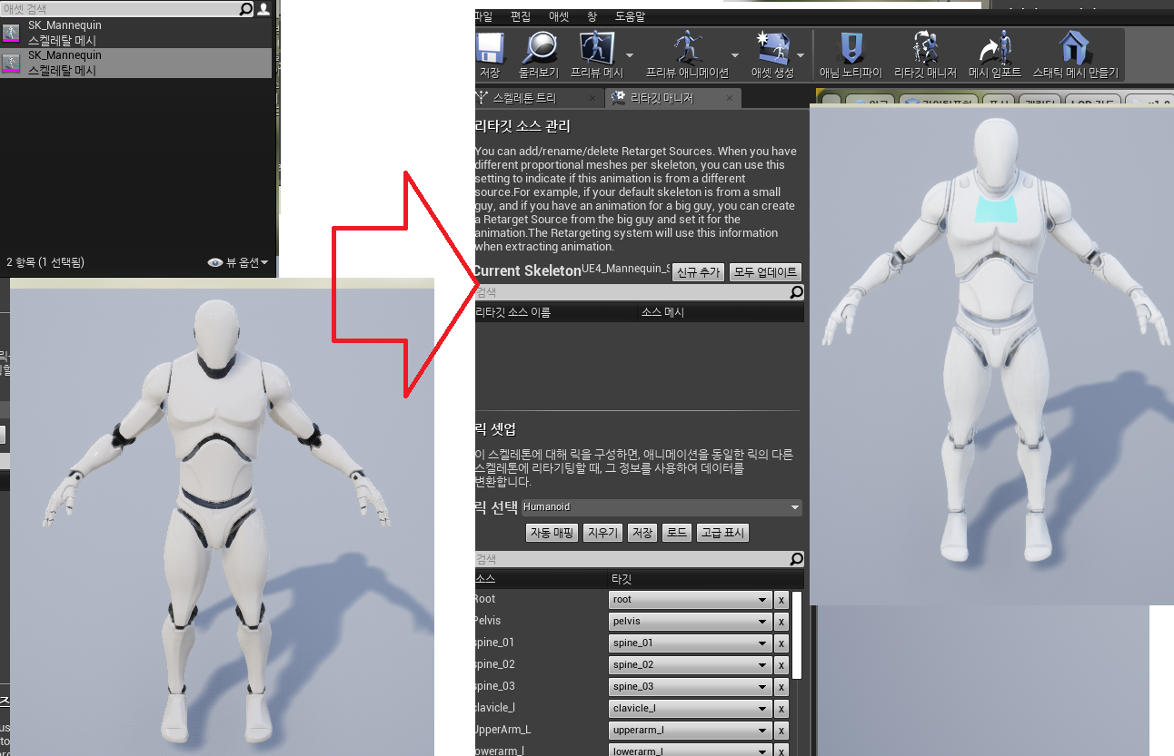 리타깃 하면 스켈레톤이 안맞는 현상이 발생한다.