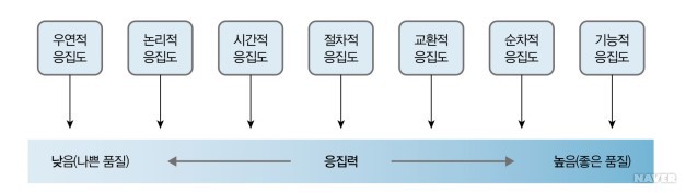 유사한 성격을 가지거나 특정 형태로 분류되는 처리요소들로 하나의 모듈이 형성되는 경우의 응집도