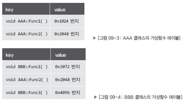 - 가상함수를 포함하는 클래스는 컴파일러가 '가상함수 테이블' 을 만든다.