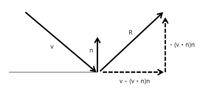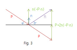 - 가는 투영벡터 ((a⋅n)⋅n(a⋅n)⋅n) 를 2를 곱해여 빼준다