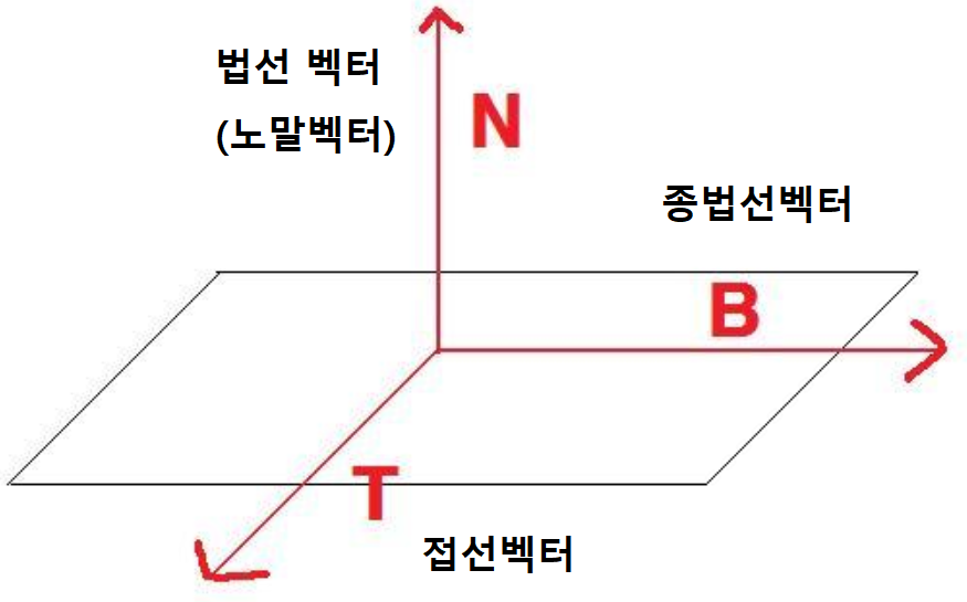 - 접선벡터는 법선벡터와 종법선벡터에 직교 t=n×b