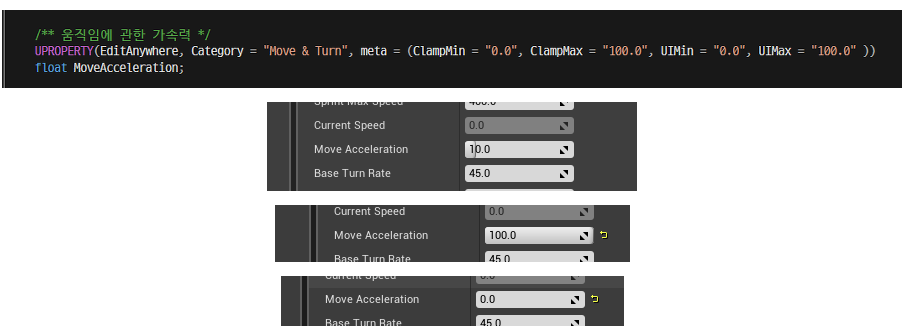 - BlueprintReadOnly = 블루프린트에서 읽기만 가능(값이 항상 고정된다.)