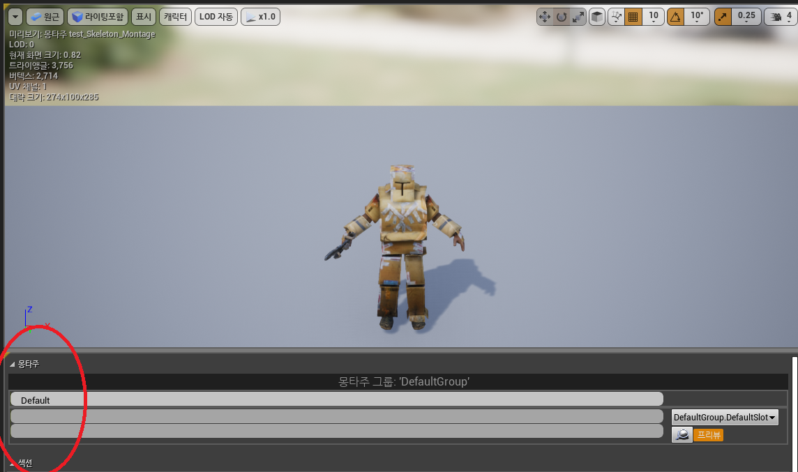 몽타주 애셋을 생성하면 기본으로 Default라는 이름의 섹션이 주어진다.