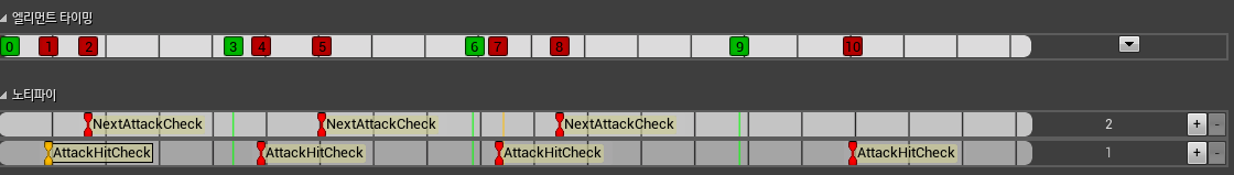 * 이제 노티파이 설정으로 가서 각 섹션별로 공격판정을 할 타이밍을 재설정한다.