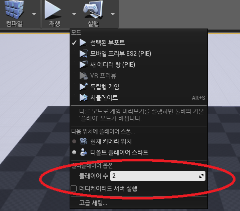 * 데디케이드 서버 실행을 체크하고 1인으로 실행하면 백그라운드의 데디케이티드 서버에 연결됨,